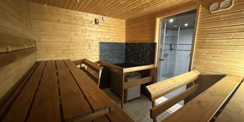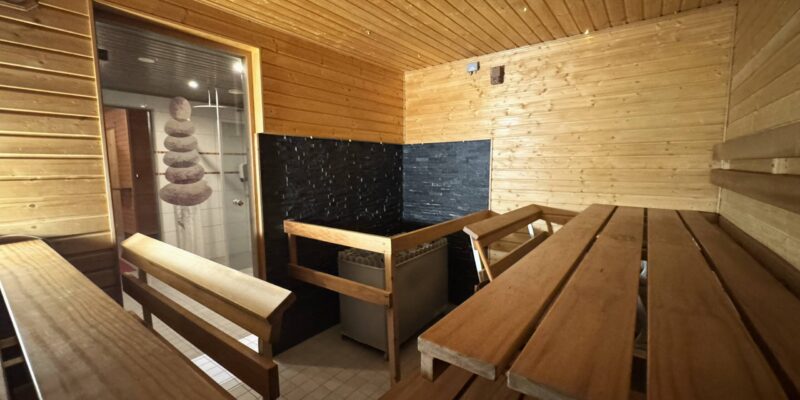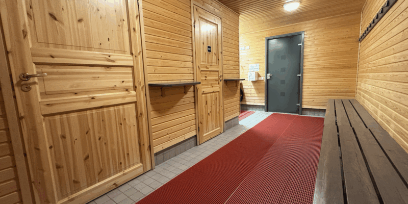 Huoltotiloista löytyy myös runsaasti vessoja sekä miehille että naisille. Talvikaudella eteisen yhteydessä on asiakkaiden käytettävissä suksien voiteluhuone. Eteisestä on kulku myös pesutiloihin, jotka ovat erikseen miehille ja naisille. Pesutiloihin pääsee vastaanotosta sisäänkirjautumisen yhteydessä saatavalla avainlätkällä. Pesutiloista löytyvät pukuhuone, vessa, suihkut sekä sauna.